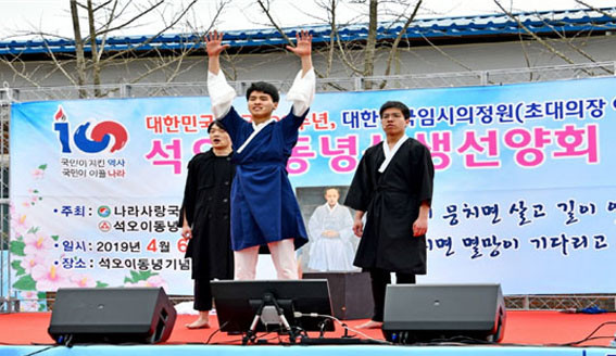 ÀÌÈ ÇÔ²² ¼±¾çȸ ¹ÚÅÂÇÏ À§¿ø°ú ±è³²¿ë ¿©¼ººÎÀåÀÇ ¼±Ã¢À¸·Î ¿ì¸®¹ÎÁ·ÀÇ µîºÒÀ̾ú´ø ¼®¿ÀÀ̵¿³ç¼±»ýÀÇ ³ª¶ó»ç¶û Á¤½ÅÀ» °è½ÂÇϰí ÅëÇÕ°ú ÅëÀÏÀÇ ½Ã´ë¸¦ ¿¾î°¡´Â ´ç´çÇÑ ÁÖ¿ªÀÌ µÉ °ÍÀ» ´ÙÁüÇÏ´Â 3°³ Ç׸ñÀÇ ¼±¾ð¹®À» Âü°¡ÀÚ Àϵ¿À¸·Î äÅÃÇß´Ù.