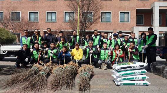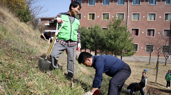 À̳¯ ½£ °¡²Ù±â Çà»ç´Â Áö¿ª»çȸ À¯°ü±â°üÀÎ ¾Æ»ê¿Â±Ã·ÎÅ͸®Å¬·´(ȸÀå À±Á¤Èñ)¿Í ¿¬°èÇÏ¿© ½Ç½ÃµÇ¾úÀ¸¸ç, ¾Æ»ê¿Â±Ã·ÎÅ͸®Å¬·´¿¡¼ ±âÁõÇÑ ¹«±ÃÈ 250ÁÖ¿Í ¾Æ»êÆú¸®ÅØ¿¡¼ ¸¶·ÃÇÑ °¨³ª¹« 20ÁÖ, ¸ð°ú³ª¹« 5ÁÖ µî 300¿© º»À» Ä·ÆÛ½º ¿ïŸ¸® ÁÖº¯°ú ±â¼÷»ç µÚ À¯ÈÞ°ø°£¿¡ ½ÄÀçÇß°í, Ä·ÆÛ½º¿¡ °÷°÷¿¡ »êÀçµÅ ÀÖ´Â ³ª¹«¸¦ À̽ÄÇÏ´Â µî Ä·ÆÛ½º ³» »õ·Î¿î ÈÞ°Ô ¹®È°ø°£À» Á¶¼ºÇϱâ À§ÇØ ÁøÇàµÆ´Ù.