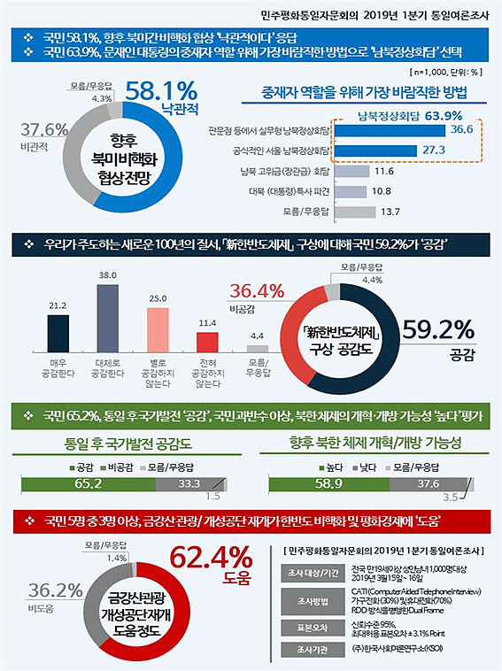 ³²ºÏ°ü°è Çö¾È Á¶»ç°á°ú, ±¹¹Î 10¸í Áß 6¸íÀº ÇϳëÀÌ È¸´ã Á÷ÈÄ Æ®·³ÇÁ ´ëÅë·ÉÀÌ ¹®ÀçÀÎ ´ëÅë·É¿¡°Ô ¿äûÇÑ ÁßÀçÀÚ ¿ªÇÒ°ú °ü·Ã, Çö ½ÃÁ¡¿¡¼ ¡®³²ºÏÁ¤»óȸ´ã¡¯(63.9%=ÆÇ¹®Á¡ µî ½Ç¹«Çü Á¤»óȸ´ã 36.6%+°ø½ÄÀû ¼¿ï Á¤»óȸ´ã 27.3%)À» ¹Ù¶÷Á÷ÇÏ°Ô »ý°¢ÇÏ´Â °ÍÀ¸·Î ³ªÅ¸³µ´Ù.
