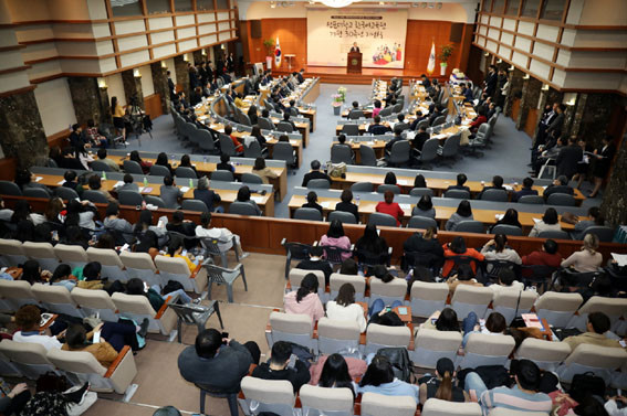 Çà»ç´Â Áö³ 3¿ù 20ÀÏ ¾Æ»êÄ·ÆÛ½º º»°ü 6Ãþ ±¹Á¦È¸Àǽǿ¡¼ ±¹³»¿Ü ÃÊû Àλ縦 ºñ·ÔÇÑ 200¿© ¸íÀÌ Âü¼®ÇÑ °¡¿îµ¥ ÇлýµéÀÇ ÃàÇϰø¿¬À¸·Î ½ÃÀ۵ƴÙ.