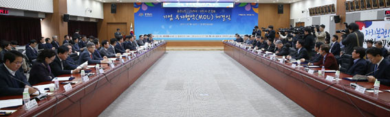 MOU¿¡ µû¸£¸é, 25°³ ±â¾÷Àº õ¾È°ú º¸·É, ¾Æ»ê, °è·æ, ´çÁø, ±Ý»ê, ¼Ãµ, È«¼º, ¿¹»ê µî 9°³ ½Ã¡¤±º ³» »ê´Ü µî 59¸¸ 8õ316§³ÀÇ ºÎÁö¿¡ 4õ616¾ï ¿øÀ» ÅõÀÚÇÑ´Ù.