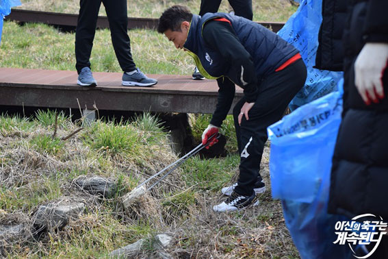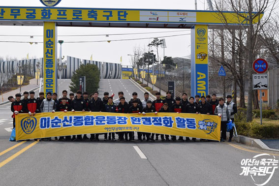 ƯÈ÷³ª À̳¯ ȯ°æÁ¤È¿¡´Â ¼±¼ö´Ü »Ó ¾Æ´Ï¶ó ¹Úµ¿Çõ °¨µ¶ ¹× ÄÚνºÅÜ, ¾Æ»ê¹«±ÃÈÇÁ·ÎÃ౸´Ü »ç¹«±¹ Á÷¿ø ¶ÇÇÑ Âü°¡ÇÏ¿© ¿îµ¿Àå ±Ùó¿¡ ¹ö·ÁÁø °¢Á¾ »ýȰ ¾²·¹±â¸¦ ¼ö°ÅÇϸç ȯ°æÁ¤È Ȱµ¿À» ½Ç½ÃÇß´Ù.