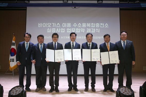 ÀÌ¿Í º°°³·Î Ãà»êºÐ´¢·ÎºÎÅÍ ¹ß»ýµÇ´Â ¡®¹ÙÀÌ¿À°¡½º ÀÌ¿ë ¼ö¼ÒÀ¶º¹ÇÕÃæÀü¼Ò ±â¼ú°³¹ß ¹× ½ÇÁõ»ç¾÷¡¯ ±¹°¡°ø¸ð°úÁ¦ À¯Ä¡¸¦ À§ÇØ µµ¿Í ³í»ê½Ã, ³í»ê°è·æÃàÇù, ¿¡ÀÌÄ¡¾ØÆÄ¿ö µîÀÌ ¾÷¹« Çù¾àÀ» ü°áÇß´Ù.