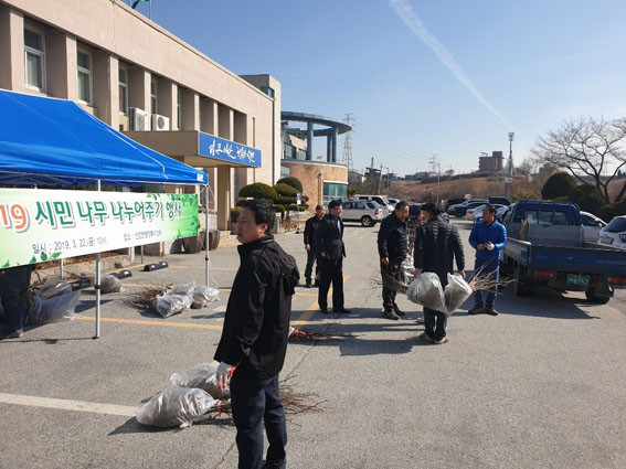 ¼±Àå¸éÀå ¹× ÀÌÀåÇùÀÇȸÀå, ¸¶À»ÀÌÀå µî ÁֹΠ200¿©¸íÀÌ Âü¿©ÇÑ °¡¿îµ¥ ³ª¹«½É±â ºÐÀ§±â¸¦ Á¶¼ºÇÏ°í »ê¸²ÀÇ °¡Ä¡¿Í ¼ÒÁßÇÔÀ» ³Î¸® ¾Ë¸®±â À§ÇØ ¼±È£µµ°¡ ³ôÀº °¨³ª¹«, ´ëÃß³ª¹« µî ÃÑ 5Á¾ 800º»À» ¹èºÎÇß´Ù.