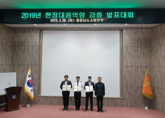 ÀÌ¾î ¡®±³À°ÈƷà ü°è ¹× ½Ç¹°ÈÀç ÈÆ·ÃÀ» ÅëÇÑ Áø¾Ð´ë¿ø ´ëÀÀ¿ª·® °È ¹æ¾È¡¯À» ¹ßÇ¥ÇÑ °øÁÖ¼Ò¹æ¼¿Í ¡®ÈÀçÇöÀå¿¡¼ ¼±Âø´ëÀÇ ¼º°øÀûÀÎ Ãʱâ´ëÀÀÀ» À§ÇÑ °³¼± ¹æ¾È¡¯À» ¹ßÇ¥ÇÑ ¼Ãµ¼Ò¹æ¼°¡ ¿ì¼ö»ó°ú Àå·Á»óÀ» Â÷ÁöÇß´Ù.