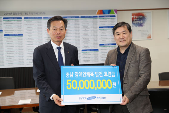 »ï¼ºSDIõ¾È»ç¾÷ÀåÀº Áö³ 2014³âºÎÅÍ 6³â¿¡ °ÉÃÄ ¸Å³â 5õ¸¸ ¿ø¾¿ ÃÑ 3¾ï ¿øÀ» Ãæ³² Àå¾ÖÀÎüÀ° ¹ßÀüÀ» À§ÇØ ÈÄ¿øÇß´Ù.