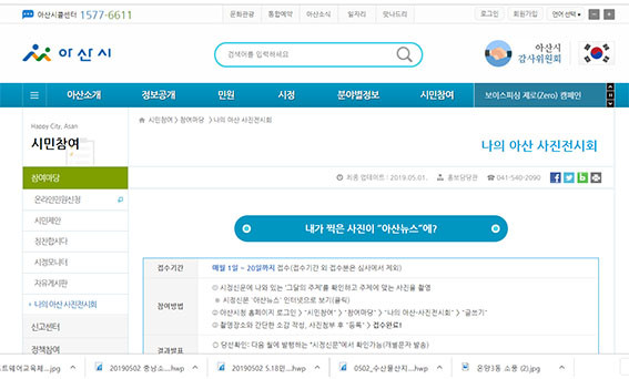 ¾Æ»ê´º½º 5¿ùÈ£¿¡¼ óÀ½À¸·Î ÁøÇàÇÏ´Â ¡®³ªÀÇ ¾Æ»ê, »çÁøÀü½Ãȸ¡¯ À̺¥Æ®´Â ¿ÀÇÁ¶óÀÎ ¸ÅüÀÎ ½ÃÁ¤½Å¹® ¾Æ»ê´º½º¿¡ Á¦½ÃµÈ ¡®±× ´ÞÀÇ »çÁøÁÖÁ¦¡¯¿¡ ¸Â°Ô ½Ã¹ÎÀÌ Á÷Á¢ »çÁøÀ» Âï¾î ¿Â¶óÀÎ ¸ÅüÀÎ ¾Æ»ê½Ãû ȨÆäÀÌÁö¸¦ ÅëÇØ Á¢¼öÇÏ´Â ¿Â?¿ÀÇÁ¶óÀÎ ¿¬°è À̺¥Æ®ÀÌ´Ù.