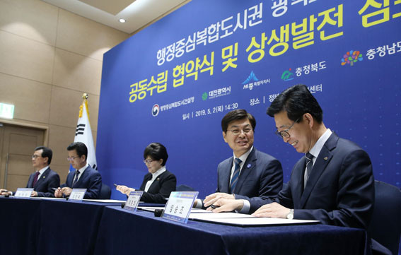 Çູû°ú ´ëÀü±¤¿ª½Ã(½ÃÀå ÇãÅÂÁ¤), ¼¼Á¾Æ¯º°ÀÚÄ¡½Ã(½ÃÀå ÀÌÃáÈñ), ÃæÃ»ºÏµµ(µµÁö»ç À̽ÃÁ¾), ÃæÃ»³²µµ(µµÁö»ç ¾ç½ÂÁ¶) µî ÃæÃ»±Ç 4°³ ½Ã¡¤µµ´Â ¡®2040 Çູµµ½Ã±Ç ±¤¿ªµµ½Ã°èȹ¡¯À» °øµ¿À¸·Î ¼ö¸³Çϰí Áö¿ª °£ Çù·Â»ç¾÷À» ¹ß±¼ÇÏ¿© ÃßÁøÇÏ´Â µî »ó»ý¹ßÀüÀ» À§ÇØ Çù·ÂÇϱâ·Î ÇÕÀÇÇϰí, 5¿ù 2ÀÏ Á¤ºÎ¼¼Á¾ÄÁº¥¼Ç¼¾ÅÍ¿¡¼ Çù¾à½ÄÀ» °¡Á³´Ù.