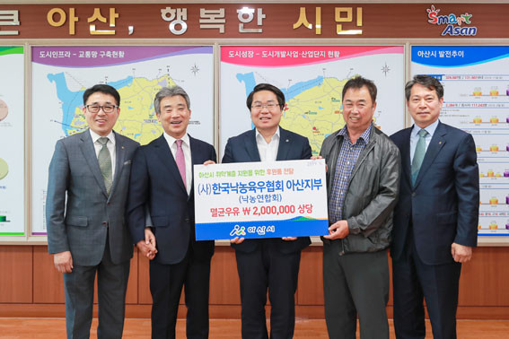 ÇÑÆí, ¾Æ»êÃàÇù, (»ç)Ãà»ê¿îµ¿º»ºÎ Ãæ³²µµÁöºÎ, (»ç)Çѱ¹³«³óÀ°¿ìÇùȸ ¾Æ»êÁöºÎ´Â 2013³âºÎÅÍ ¿¬¸» ¹× ¸íÀý µî¿¡ ¾Æ»ê½Ã Àú¼ÒµæÃþ Áö¿øÀ» À§ÇÑ ÇູŰ¿òÁö¿øÇù·ÂÀ¸·Î ¼Ò°í±â, °õÅÁ, ¿ìÀ¯, Èñ¸Á³ª´®Ä·ÆäÀÎ ÀÌ¿ôµ½±â ¼º±Ý ÈÄ¿ø µî ´Ù¾çÇÑ ÀÌ¿ô»ç¶û ½Çõ¿¡ ¾ÕÀå¼°í ÀÖ´Ù.