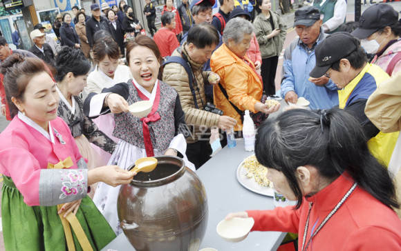 ¿Â¾ç¿Âõ»óÀÎȸ¿¡¼ ¾ß½ÉÂ÷°Ô ÁغñÇÑ Çà»ç·Î, ´ç½Ã ÀǺ¹À» Âø¿ëÇÑ ¿À¼¼Çö ¾Æ»ê½ÃÀå°ú ±è¿µ¾Ö ¾Æ»ê½ÃÀÇȸÀÇÀå µîÀÌ ½Ã¹Î°ú ÇÔ²² ÁÖ¸Ô¹äÀ» ¸¸µå´Â ¼ø¼·Î ÁøÇàµÆ´Ù. ±ÄÀº ³¯¾¾¿¡µµ Çà»ç¿¡ Âü¿©Çϱâ À§ÇØ ¸¹Àº ÀÎÆÄ°¡ ¸ô¸®¸ç ³ôÀº °ü½É ¼Ó¿¡ ½Ã¹Î ¸ðµÎ°¡ ÇÔ²²ÇÒ ¼ö ÀÖ´Â ÃàÁ¦ÀÇ ÀåÀÌ µÆ´Ù.