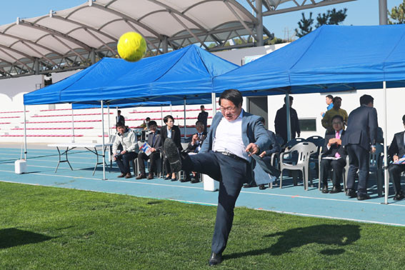 ¿À¼¼Çö ½ÃÀåÀº °³¸·½Ä¿¡ Âü¼® ½ÃÃà ÈÄ È¯¿µ»ç¸¦ ÅëÇØ ¡°Ã౸¸¦ »ç¶ûÇÏ´Â µ¿È£ÀÎ ¼±¼ö ¹× °¡Á· ¿©·¯ºÐÀÇ ¾Æ»ê ¹æ¹®À» Áø½ÉÀ¸·Î ȯ¿µÇÑ´Ù¡±¸ç ¡°Áñ°Å¿î °æ±â ÈÄ ¿ÂõÀ¸·Î ÇǷεµ Ç®°í ¾Æ»ê ¿©·¯ °÷¿¡¼ ÆîÃÄÁö´Â À̼ø½Å ÃàÁ¦µµ Áñ°Üº¸½Ã¶ó¡±°í ±ÇÀ¯Çß´Ù.