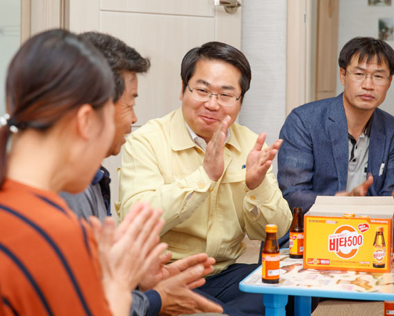 ¿À ½ÃÀåÀº ¾î·Á¿î ¿©°Ç ¼Ó¿¡¼ Á¤ºÎ º¸Á¶±Ý¿¡ ÀÇÁ¸ÇØ »ìÁö ¾Ê°í ÀÚȰ¿¡ ¼º°øÇÑ A¾¾ ºÎºÎ¸¦ °Ý·ÁÇÏ¸ç ¡°¾Æ»ê½ÃÀÇ º¹Áöü°è¿Í ±â¾÷ÀÇ ³ª´®È°µ¿ ±×¸®°í ºÎºÎÀÇ ÀÇÁö¿Í ³ë·ÂÀÌ ´õÇØÁ® ¾ÈÁ¤ÀûÀÎ »îÀ» ´©¸± ¼ö ÀÖ°Ô µÅ ±â»Ú´Ù¡±°í ÃàÇÏ¿Í ¹Ú¼ö¸¦ º¸³Â´Ù.