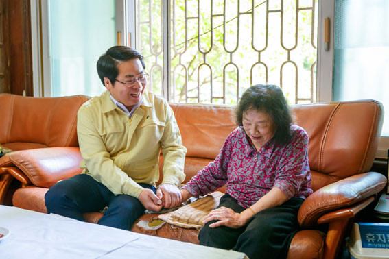 ¿À¼¼Çö ¾Æ»ê½ÃÀåÀº Áö³ 5¿ù 29ÀÏ À½ºÀ¸é ´Ù¹®È°¡Á¤°ú µ¶°Å³ëÀÎ ÀÚÅÃÀ» ¹æ¹®ÇØ ¾Ö·Î»çÇ× Ã»Ãë ¹× °Ý·Á¿Í ÇÔ²² »ýȰ ½ÇŸ¦ »ìÇÇ´Â µî ã¾Æ°¡´Â º¹Áö »ó´ãÀ» ½Ç½ÃÇß´Ù.