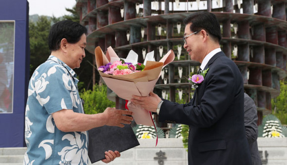 ¾Æ¿ï·¯ ½Å±Ô 6.25ÂüÀüÀ¯°øÀÚ ¼Àç°æ(39³â»ý) ¾¾¿¡°Ô ±¹°¡À¯°øÀÚ Áõ¼¸¦ ¼ö¿©Çϰí, °¨»çÀÇ ¶æÀ» ÀüÇß´Ù.