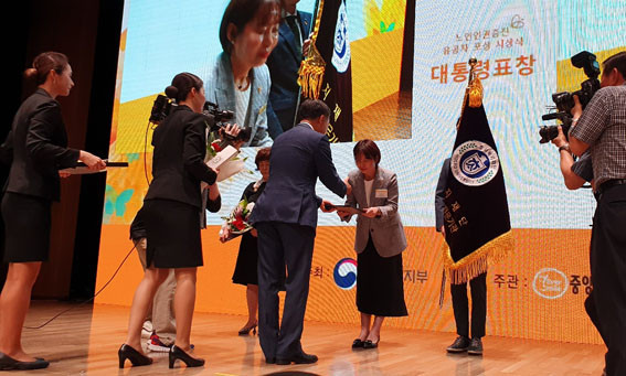 À̳¯ Çѱ¹»ó°øÈ¸ÀǼҿ¡¼ ¿¸° ±â³äÇà»ç¿¡¼´Â ¹Ú´ÉÈÄ º¸°Çº¹ÁöºÎ Àå°ü µî °ü°èÀÚ 150¿©¸íÀÌ Âü¼®ÇÑ °¡¿îµ¥ ÃæÃ»³²µµ³ëÀκ¸È£Àü¹®±â°üÀÌ ÇдëÇÇÇØ³ëÀÎÀÇ ÀÚ¸³ Áö¿øÀ» À§ÇÑ ¡®³ëÀÎÀÇ Áý¡¯ ¿î¿µ¿¡ °üÇÑ °ø·Î¸¦ ÀÎÁ¤¹Þ¾Æ ´ëÅë·ÉǥâÀ» ¼ö»óÇß´Ù.