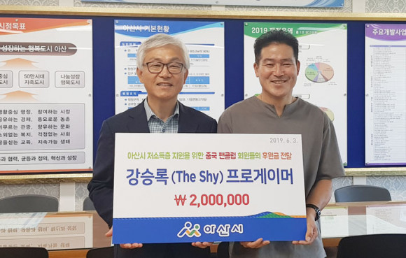 °½Â·Ï(The Shy) ÇÁ·Î°ÔÀ̸ÓÀÇ Áß±¹ ÆÒŬ·´ÀÌ ¾Æ»ê½Ã(½ÃÀå ¿À¼¼Çö) Àú¼ÒµæÃþ Áö¿øÀ» À§ÇØ »ç¿ëÇØ ´Þ¶ó¸ç Áö³ 6¿ù 3ÀÏ 200¸¸ ¿øÀÇ ÈÄ¿ø±ÝÀ» Àü´ÞÇÏ´Â ¶æ±íÀº ÀÚ¸®°¡ ÀÖ¾ú´Ù.