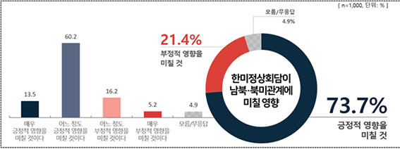 | | ¡è¡è ¡ãÇѹÌÁ¤»óȸ´ãÀÌ ³²ºÏ¡¤ºÏ¹Ì°ü°è¿¡ ¹ÌÄ¥ ¿µÇâ <ÀÚ·áÁ¦°ø=¹ÎÁÖÆòÈÅëÀÏÀÚ¹®È¸ÀÇ> | ¨Ï ¿Â¾ç½Å¹® | | 6¿ù¸»·Î ¿¹Á¤µÈ ¡®ÇѹÌÁ¤»óȸ´ã¡¯¿¡ ´ëÇØ¼´Â ±¹¹Î 10¸í Áß 7¸í ÀÌ»óÀÌ ³²ºÏ°ü°è ¹× ºÏ¹Ì°ü°è¿¡ ¡®±àÁ¤Àû ¿µÇâÀ» ¹ÌÄ¥ °Í¡¯(73.7%=¸Å¿ì 13.5%+¾î´À Á¤µµ 60.2%)À̶ó°í ÀÀ´äÇß´Ù.