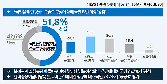 ¹ÎÁÖÆòÈÅëÀÏÀÚ¹®È¸ÀÇ(¼ö¼®ºÎÀÇÀå ±è´ö·æ, »ç¹«Ã³Àå ȲÀμº)´Â Áö³ 6¿ù 14~15ÀÏ, 2Àϰ£ Àü±¹ ¼ºÀγ²³à 1õ¸íÀ» ´ë»óÀ¸·Î 2019³â 2ºÐ±â ±¹¹Î ÅëÀÏ¿©·ÐÁ¶»ç¸¦ ½Ç½ÃÇÏ°í ±× °á°ú¸¦ 18ÀÏ ¹ßÇ¥Çß´Ù.