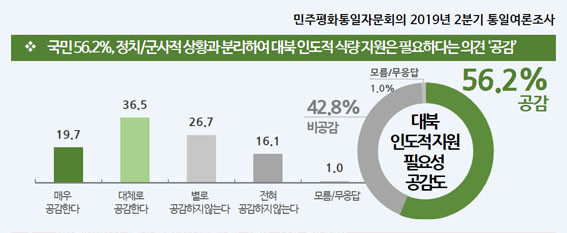 | | ¡è¡è ¡ã´ëºÏ ÀεµÀû Áö¿ø Çʿ伺 °ø°¨µµ <ÀÚ·áÁ¦°ø=¹ÎÁÖÆòÈÅëÀÏÀÚ¹®È¸ÀÇ> | ¨Ï ¿Â¾ç½Å¹® | | ÇÑÆí, ´ëºÏ ÀεµÀû ½Ä·® Áö¿øÀÇ Çʿ伺¿¡ ´ëÇØ¼µµ ±¹¹ÎÀÇ °ú¹Ý¼ö(56.2%)°¡ ¡®°ø°¨¡¯(56.2%=¸Å¿ì 19.7%+´ëü·Î 36.5%)ÇÏ´Â °ÍÀ¸·Î Á¶»çµÆ´Ù(¡®°ø°¨ÇÏÁö ¾Ê´Â´Ù¡¯´Â ÀÀ´äÀº 42.8%).