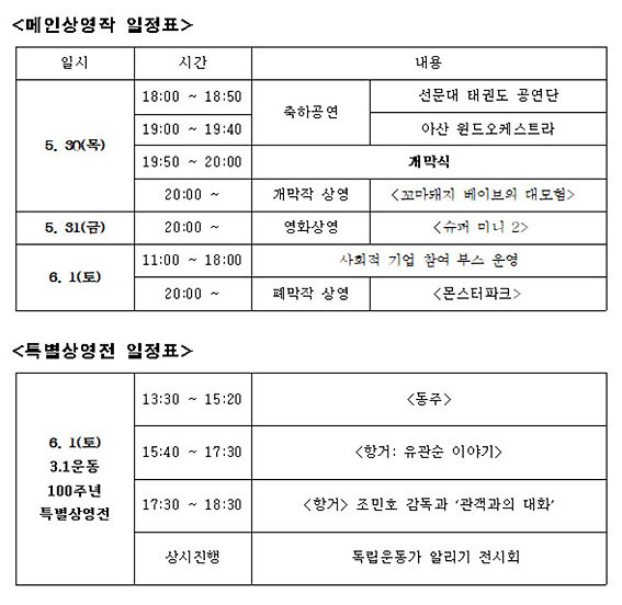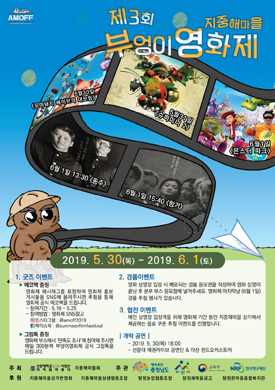 Á¦3ȸ ºÎ¾ûÀÌ ¿µÈÁ¦(AMOFF£»Asan Mediterraneanvillage Owl Film Festival)°¡ 5¿ù 30ÀϺÎÅÍ 6¿ù 1ÀϱîÁö ¾Æ»ê½Ã ÅÁÁ¤¸é ÁöÁßÇØ¸¶À»¿¡¼ ¿¸°´Ù.