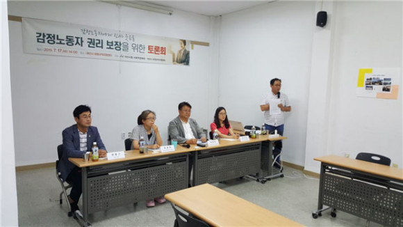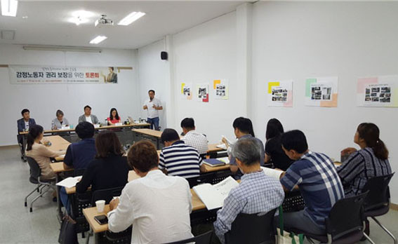 ÀÌ ³¯ Åä·Ðȸ¿¡¼´Â, °¨Á¤³ëµ¿ÀÚ º¸È£¸¦ À§ÇÑ ¼¿ï½Ã »ç·Ê¿Í Àü±¹Àû È帧À» »ìÆìº» ÈÄ ¾Æ»ê½Ã °ø°øºÎ¹® °¨Á¤³ëµ¿ÀÚµéÀÇ ½ÇÅ ¹× Á¤Ã¥´ë¾ÈÀÌ Åä·ÐµÆ´Âµ¥, ƯÈ÷ ¹ßÇ¥ÀÚ·Î ³ª¼± ¼¿ï½Ã °¨Á¤³ëµ¿º¸È£¼¾ÅÍ ÀÌÁ¤ÈÆ ¼¾ÅÍÀåÀº ¡°Àü±¹ÀûÀ¸·Î 20¿©°³ ³Ñ´Â Áö¿ªÀÌ Á¶·Ê¸¦ ¸¸µé¾úÁö¸¸ ½ÇÁ¦ ÀÛµ¿µÇ´Â °÷Àº ¸¹Áö ¾Ê´Ù¡±¸ç °¨Á¤³ëµ¿ÀÚ ÀαǺ¸ÀåÀ» À§ÇÑ ÁöÀÚüÀÇ ÀÇÁö¸¦ °Á¶Çß´Ù.