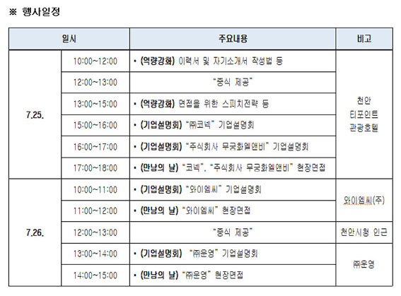Ãæ³²ÀÏÀÚ¸®Á¾ÇÕ¼¾ÅÍ´Â ¿ÃÇØ ÀÎÀç¾ç¼º¼Ò¸¦ 4ȸ¿¡ °ÉÃÄ °³ÃÖÇÒ ¿¹Á¤ÀÌ´Ù. Âü°¡¹®ÀÇ´Â ÃæÃ»³²µµ°æÁ¦ÁøÈï¿ø(www.cepa.or.kr)°ú Ãæ³²ÀÏÀÚ¸®Á¾ÇÕ¼¾ÅÍ(www.cnjob.or.kr) ȨÆäÀÌÁö ¶Ç´Â À¯¼±ÀüÈ(¢Ï041-539-4556)·Î ¹®ÀÇ¡¤Á¢¼öÇÏ¸é µÈ´Ù.