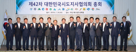 ¾ç Áö»ç´Â 7¿ù 24ÀÏ ºÎ»ê ´©¸®¸¶·ç ¿¡ÀÌÆÑÇϿ콺¿¡¼ ¿¸° ¹®ÀçÀÎ ´ëÅë·É-½Ã¡¤µµÁö»ç °£´ãȸ¿¡ Âü¼®Çß´Ù.