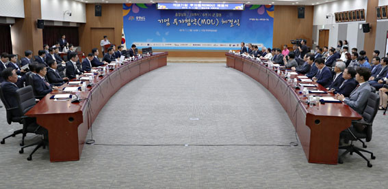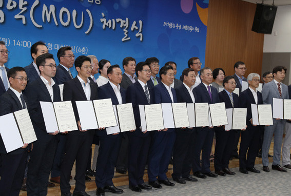 ¾ç½ÂÁ¶ Áö»ç´Â 7¿ù 1ÀÏ µµÃ» ´ëȸÀǽǿ¡¼ ±¸º»¿µ õ¾È½ÃÀåÀ» ºñ·ÔÇÑ 6°³ ½Ã¡¤±º ½ÃÀ塤±º¼ö ¶Ç´Â ºÎ´ÜüÀå, ÃÖâ¿ì ´ë»ó¶óÀÌÇÁ»çÀ̾𽺠´ëÇ¥ÀÌ»ç µî 19°³ ±â¾÷ ´ëÇ¥¿Í ÇÕµ¿ ÅõÀÚÇù¾à(MOU)À» ü°áÇß´Ù.