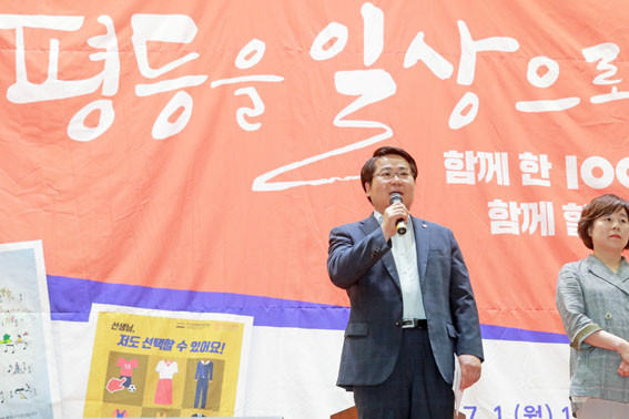 ÀÌ¾î ¿À¼¼Çö ¾Æ»ê½ÃÀåÀº ¡°¿©¼ºµéÀÌ ¾ÈÀüÇϰí Â÷º°¹ÞÁö ¾ÊÀ¸¸ç »çȸ ±¸¼º¿øÀ¸·Î¼ ´ç´çÈ÷ Âü¿©ÇÒ ¼ö Àִ ȯ°æÀ» Á¶¼ºÇØ ³ª°¥ °ÍÀ» ¾à¼Óµå¸°´Ù¡±°í ¸»Çß´Ù.