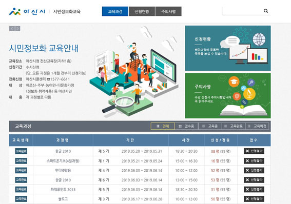 ±âŸ ÀÚ¼¼ÇÑ ½Ã¹ÎÁ¤º¸È±³À°ÀÇ Àü ±³À°°úÁ¤ÀÇ ³»¿ë ¹× ÀÏÁ¤Àº ¾Æ»ê½Ã¹ÎÁ¤º¸È±³À° ȨÆäÀÌÁö (http://edu.asan.go.kr/edu/)¿¡¼ È®ÀÎÇÒ ¼ö ÀÖ´Ù.