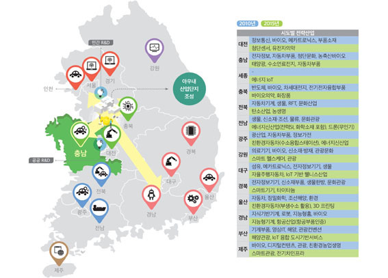 | | ¡è¡è ¡ã<±×¸² 1> ½Ãµµº° Àü·«»ê¾÷ ¹× Ãæ³² ¡®¾Æ¿ì³» »ê¾÷´ÜÁö¡¯ <»çÁøÁ¦°ø=Ãæ³²¿¬±¸¿ø> | ¨Ï ¿Â¾ç½Å¹® | | ¿¬±¸ÁøÀÌ ¡®¾Æ¿ì³» »ê¾÷´ÜÁö¡¯ Èĺ¸Áö·Î Á¦¾ÈÇÑ Ãµ¾ÈÀº ±³Åë°ú ¹°·ùÀÇ ¿äÁöÀÎ µ¿½Ã¿¡ ¼öµµ±Ç ¹Î°£ R&D¿Í ´ëÀüÀÇ °ø°ø R&D, Á¤ºÎ(¼¼Á¾)ÀÇ Áö¿ø, Ãæ³²µµÀÇ ¹ÐÂøÇü ÇàÁ¤¼ºñ½º¸¦ °áÁýÇÒ ¼ö ÀÖ´Â ÃÖ¼±ÀÇ Àå¼Ò¶ó´Â °ÍÀÌ´Ù. <±×¸² 1>