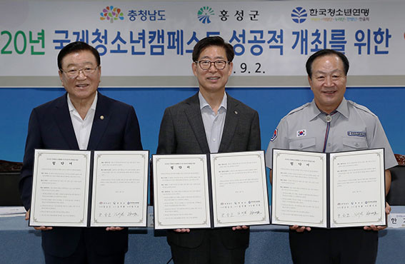 | | ¡è¡è <»çÁøÁ¦°ø=Ãæ³²µµ> | ¨Ï ¿Â¾ç½Å¹® | | Ãæ³²µµ´Â 9¿ù 2ÀÏ µµÃ» »óȲ½Ç¿¡¼ È«¼º±º, Çѱ¹Ã»¼Ò³â¿¬¸Í°ú ÇÔ²² ¡®2020 ±¹Á¦Ã»¼Ò³âÄ·Æä½ºÆ® ¾÷¹«Çù¾à(MOU) ü°á½Ä¡¯À» ¿¾ú´Ù.