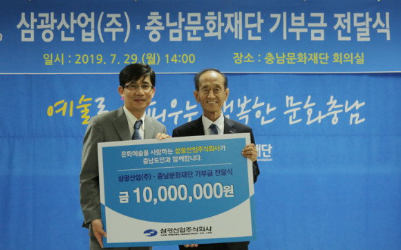 Ãæ³²¹®ÈÀç´Ü°ú »ï±¤»ê¾÷ ÁÖ½Äȸ»ç´Â Áö³ 7¿ù 29ÀÏ(¿ù), Ãæ³²¹®ÈÀç´Ü ȸÀǽǿ¡¼ Ãæ³²¹®È¿¹¼ú¹ßÀü ¹× Ãæ³²µµ¹Î ¹®ÈÇâÀ¯ È®´ë¸¦ À§ÇÏ¿© »ï±¤»ê¾÷-Ãæ³²¹®ÈÀç´Ü ±âºÎ±Ý Àü´Þ½ÄÀÌ ÁøÇàÇß´Ù.