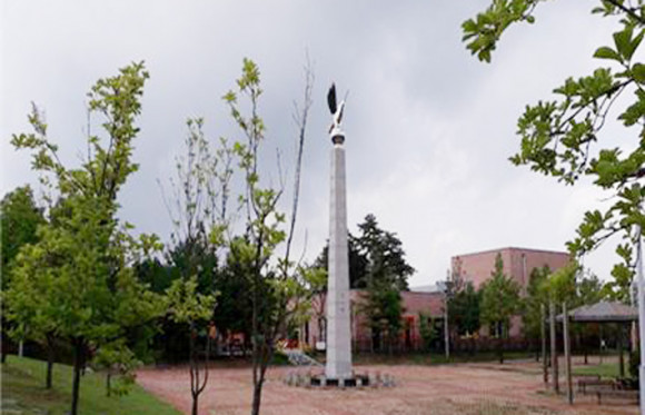 ƯÈ÷, 2012³â 8.15°æÃà°ú Á¦60ȸ µÐÆ÷¸é¹ÎÀÇ ³¯À» ±â³äÇØ °Ç¸³µÈ °ø¿ø ³» 13m ³ôÀÌÀÇ µÐÆ÷¸é¹ÎÇåÀåžÀº ºñ»óÀ» ²Þ²Ù´Â »õÀÇ Çü»óÀ¸·Î ÁÖ¹ÎÈÇÕ°ú Áö¿ª»ç¶û Á¤½ÅÀÇ Èñ¸ÁÀÇ ¿°¿øÀ» ´ã°í ÀÖ´Ù.