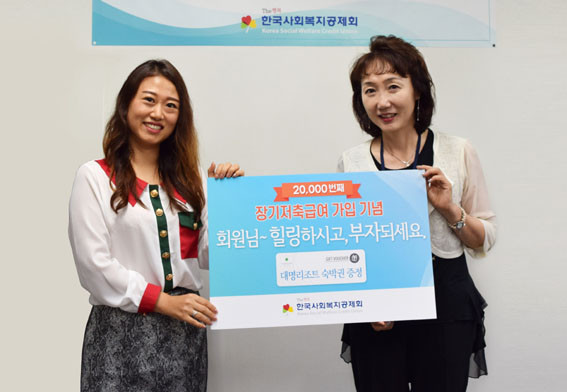 Çѱ¹»çȸº¹Áö°øÁ¦È¸ °¼±°æ ÀÌ»çÀåÀº Á¶¿©³² ȸ¿øÀ» ÃÊ´ëÇØ, ÃàÇÏ ¸Þ½ÃÁö¿Í ÇÔ²² ÀçÃæÀüÀÇ ±âȸ¸¦ Á¦°øÇϰíÀÚ È¸¿ø ´ë»ó º¹Áö¼ºñ½ºÀÇ ÇÑ Á¾·ùÀÎ ´ë¸í¸®Á¶Æ® 2¹Ú ¼÷¹Ú±ÇÀ» Àü´ÞÇß´Ù.