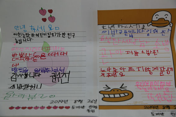 Àü´ÞµÈ ÇлýµéÀÇ ÆíÁö¿¡´Â ¡°ÁöÁø´ëÇÇÇÏ´Â ¹æ¹ýÀ» ¾Ë·ÁÁּż °¨»çÇÕ´Ï´Ù¡±, ¡°¼Ò¹æ°ü ¼±»ý´Ô ¼Ò¹æÂ÷ Å¿öÁּż °¨»çÇÕ´Ï´Ù¡± ¡°¸ÚÁø ¼Ò¹æ°ü´Ô! ÀúÈñ¸¦ ÁöÄÑÁּż °¨»çÇØ¿ä¡±µî Á÷Á¢ ¾´ ±Û·Î °¨»çÀÇ ¸¶À½À» ÀüÇß´Ù.