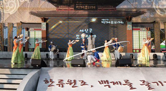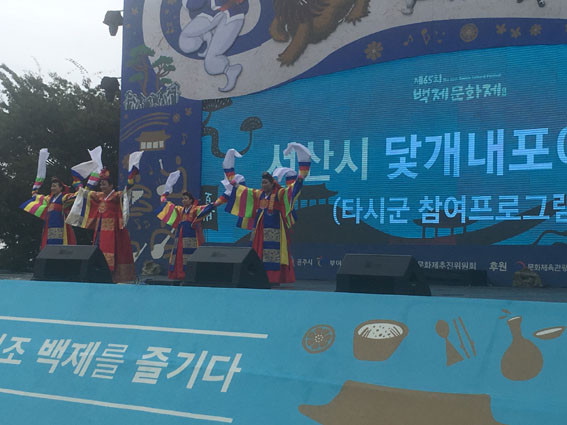 10¿ù 1ÀÏ °øÁÖ Çà»çÀå ÁÖ¹«´ë¿¡¼´Â ¡â´çÁø½ÃÀÇ ¡®Çѱ¹¹®È¿¹¼úÇùµ¿Á¶ÇÕ¡¯(±¸¸§Àº °¡¶ôÀ» Ÿ°í) ¡â¾Æ»ê½ÃÀÇ ¡®¿Â»õ¹Ì·Î¿¹¼ú´Ü¡¯(¹éÁ¦¹®È Èï¿¡ ¹°µé´Ù) ¡â°è·æ½ÃÀÇ ¡®°è·æ½Ã¾ö»ç¿¹¼ú´Ü¡¯(½Åµµ¾È) ¡â¼»ê½ÃÀÇ ¡®´é°³³»Æ÷¿¹¼ú´Ü¡¯(´é°³¹éÁ¦»ç½ÅÇà·Ä µîÀÌ ¸ÚÁø ¹«´ë·Î ÃàÁ¦ ºÐÀ§±â¸¦ ÇѲ¯ °íÁ¶½ÃÄ×´Ù.