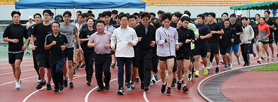 ¾ç Áö»ç´Â 9¿ù 3ÀÏ Ãæ³²Ã¼°í ¼±¼ö´Ü°ú À°»ó, ±Ù´ë5Á¾, űǵµ, ÀζóÀηѷ¯, ¸¶¶óÅæ µî 5°³ Á¾¸ñ 200¿©¸íÀÇ ¼±¼öµéÀÌ ÈÆ·Ã ÁßÀÎ ³í»ê°ø¼³¿îµ¿ÀåÀ» ¹æ¹®Çß´Ù.
