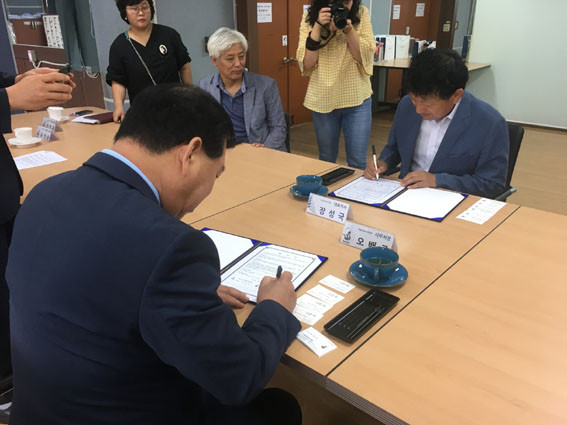 ¿À¹è±Ù (Àç)¹éÁ¦¹®ÈÁ¦ÃßÁøÀ§¿øÈ¸ À§¿øÀå Á÷¹«´ëÇà(»ç¹«Ã³Àå)°ú À强±¹ (Àç)Àͻ깮Ȱü±¤Àç´Ü ´ëÇ¥ÀÌ»ç´Â 9¿ù 4ÀÏ ¿ÀÀü 11½Ã ÀüºÏ ÀÍ»ê½Ã ¼ÒÀç Àͻ깮Ȱü±¤Àç´Ü¿¡¼ ¾÷¹«Çù¾à(MOU)À» ü°áÇß´Ù.