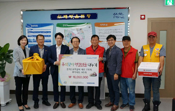 | | ¡è¡è ¡ã¹è¹æÀ¾ Ãß¼®¸ÂÀÌ ¼±¹° Àü´Þ½Ä <»çÁøÁ¦°ø=¾Æ»ê½Ã> | ¨Ï ¿Â¾ç½Å¹® | | »ï¼ºÀüÀÚ TSPÃѰýÀº Ãß¼®¸íÀýÀ» ¸Â¾Æ 9¿ù 10ÀÏ ¹è¹æÀ¾ ÇູŰ¿òÃßÁø´Ü(°øµ¿´ÜÀå ±è¿Ï°â, ¿Àº´±¹)À» ã¾Æ °ü³» ³ëÀÎ, ¾Æµ¿¼¼´ë µî ¼Ò¿Ü°èÃþÀ» À§ÇÑ ¸íÀý¼±¹° 321¼¼Æ®(1õ605¸¸ ¿ø »ó´ç µ·°¡½º&¶±°¥ºñ¼¼Æ® ¹× ºÎ½Ä¼¼Æ®)¸¦ ÀüÇϸç Áö¿ª»çȸ º¹ÁöÁõÁø¿¡ ±â¿©Çß´Ù.
