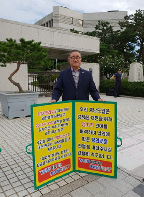 ´çÁø½Ã¹Î Áß½ÉÀ¸·Î 16³â 9¿ùºÎÅÍ Çå¹ýÀçÆÇ¼Ò¿¡ ¾Õ¿¡¼ ½ÃÀÛµÈ ¸±·¹ÀÌ 1ÀνÃÀ§°¡ ´ë¹ý¿øÀ¸·Î ¿Å°ÜÁö°í, ´çÁø Ãâ½Å ±è¸í¼± µµÀÇ¿øµµ 1ÀνÃÀ§¿¡ Âü¿©ÇØ ºÐÀïÁö¿ªÀÌ ÃæÃ»³²µµ·ÎÀÇ ±Í¼Ó °áÁ¤ÀÌ µÇµµ·Ï ´ë¹ý¿øÀÇ Çö¸íÇÑ ÆÇ°áÀ» ¿äûÇß´Ù.
