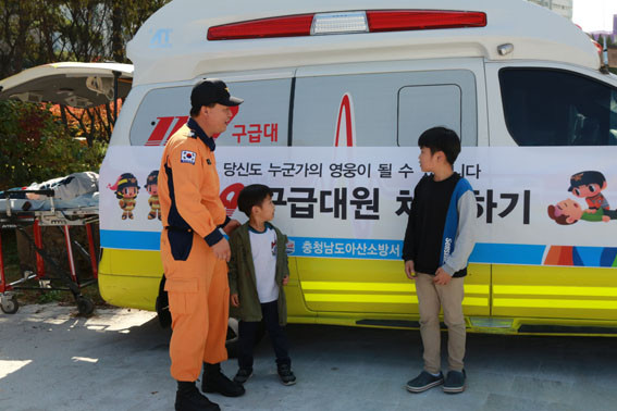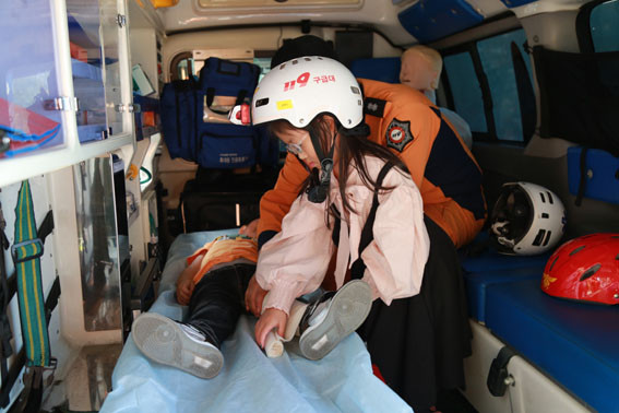 ƯÈ÷ ÀÀ±Þóġ ÁýÁß È«º¸±â°£À» ¸Â¾Æ ¡®119±¸±Þ´ë¿ø µÇ¾îº¸±â¡¯Ã¼ÇèÀ» ¿î¿µÇØ ½ÇÁ¦ ±¸±ÞÀåºñ¸¦ ÀÌ¿ëÇÑ ÀÀ±Þóġ°úÁ¤°ú ±¸±ÞÂ÷¿¡ Á÷Á¢ ž½ÂÇÏ¿© ȯÀÚÀ̼۰úÁ¤ µîÀ» üÇèÇØ º¼ ¼ö ÀÖ°Ô ÇÏ¿© û¼Ò³âµéÀÇ Å« Àα⸦ ²ø¾ú´Ù.