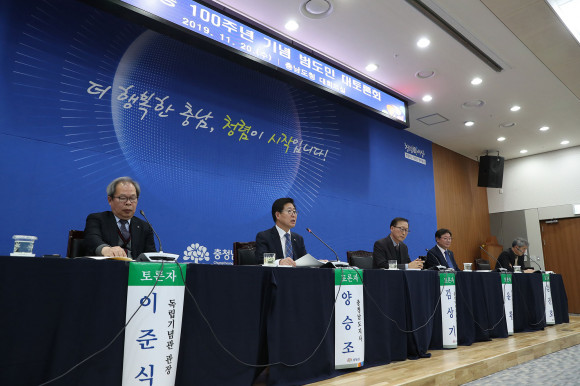 À̹ø Åä·Ðȸ´Â 3.1¿îµ¿°ú ÀÓ½ÃÁ¤ºÎ ¼ö¸³ 100ÁÖ³âÀÇ ÇØ°¡ Àú¹°¾î °¡´Â ½ÃÁ¡¿¡ ¸ÂÃç ¿Ã ÇÑ ÇØ µµ°¡ ÃßÁøÇØ ¿Â °¢Á¾ ±â³ä»ç¾÷ µîÀ» °øÀ¯Çϰí, Ãæ³²ÀÇ µ¶¸³¿îµ¿Á¤½Å °è½Â µî ¹Ì·¡ ¹ßÀü ¹æ¾ÈÀ» ³íÀÇÇϱâ À§ÇØ ¸¶·ÃÇß´Ù.