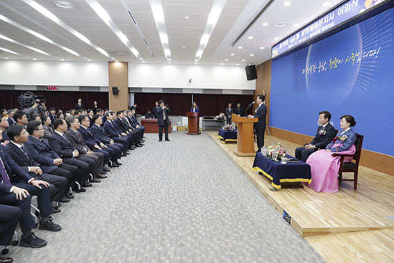 ¾ç½ÂÁ¶ Áö»ç¿Í µµÃ» °¢ ½Ç¡¤±¹Àå ¹× Á÷¿ø 200¿© ¸íÀÌ Âü¼®ÇÑ °¡¿îµ¥ ¿¬ À̹ø Çà»ç´Â ÁÖ¿ä ¾à·Â ¼Ò°³, °ø·ÎÆÐ ÁõÁ¤, ÀÌÀÓ»ç µîÀÇ ¼øÀ¸·Î ÁøÇàÇß´Ù.