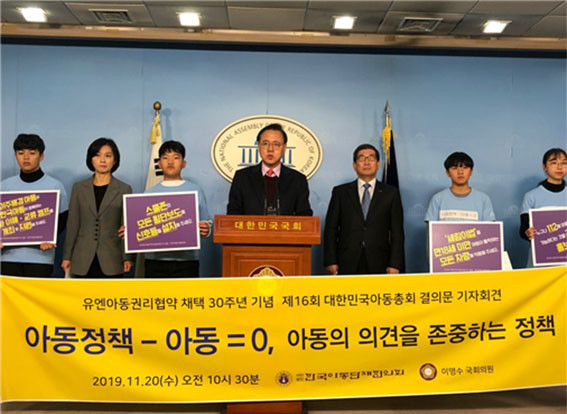 º¸°Çº¹ÁöºÎ¿Í Çѱ¹¾Æµ¿´ÜüÇùÀÇȸ°¡ ÁÖÃÖ¡¤ÁÖ°üÇÏ¿© 2019³â 8¿ù 6ÀϺÎÅÍ 8ÀϱîÁö 2¹Ú3ÀÏ µ¿¾È ±¹È¸¿Í ±¹Á¦Ã»¼Ò³â¼¾ÅÍ¿¡¼ °³ÃÖµÈ 2019³â Á¦16ȸ ´ëÇѹα¹¾Æµ¿ÃÑȸ¿¡ Âü¿©ÇÑ ¾Æµ¿´ëÇ¥µéÀº ¾Æµ¿Á¤Ã¥ ? ¾Æµ¿ = 0 ¡®¾Æµ¿ÀÇ ÀǰßÀ» Á¸ÁßÇÏ´Â Á¤Ã¥¡¯À» À§ÇØ ´ÙÀ½°ú °°ÀÌ Á¤ºÎ¿¡ Á¦¾ÈÇÕ´Ï´Ù.