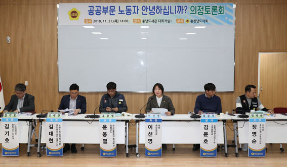 À̼±¿µ ÀÇ¿ø(Á¤ÀǴ硤ºñ·Ê)ÀÇ ¿äûÀ¸·Î ¿¸° À̹ø Åä·Ðȸ´Â ÃæÃ»³²µµ °ø°øºÎ¹®¿¡ Á¾»çÇÏ´Â ºñÁ¤±ÔÁ÷ ³ëµ¿ÀÚÀÇ Á¤±ÔÁ÷ Àüȯ ½ÇÅÂ¿Í Àüȯ°úÁ¤À» »ìÆìº¸°í ÀüȯµÈ ³ëµ¿ÀÚÀÇ Ã³¿ì µî ³ëµ¿È¯°æÀ» Á¡°ËÇØ °³¼±ÇÏ´Â ÇÑÆí, °ø°ø¼ºñ½º Áú ¶ÇÇÑ Á¦°íÇÏÀÚ´Â ÃëÁö¿¡¼ ¸¶·ÃµÆ´Ù.