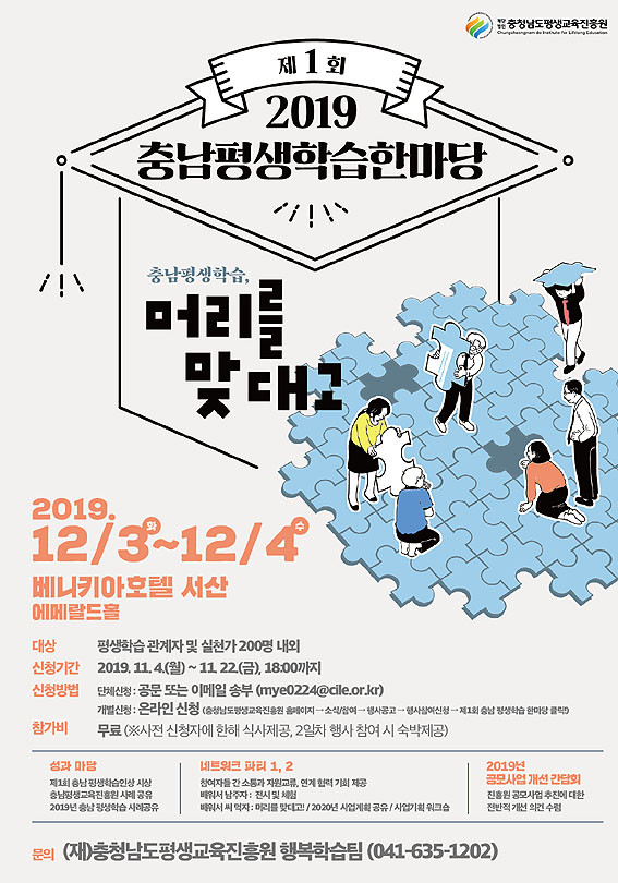 Çà»ç¿Í °ü·ÃÇØ ÀÚ¼¼ÇÑ »çÇ×Àº ÃæÃ»³²µµÆò»ý±³À°ÁøÈï¿ø ȨÆäÀÌÁö °øÁö»çÇ×(https://www.cile.or.kr)À» ÅëÇØ È®ÀÎÇÒ ¼ö ÀÖÀ¸¸ç, ÁÖÁ¦º° ¿î¿µÀÚ ½ÅûÀº 11¿ù 15ÀϱîÁö, ÀÏ¹Ý Âü°¡ÀÚ ½ÅûÀº 11¿ù 22ÀϱîÁö ÁøÇàµÈ´Ù.