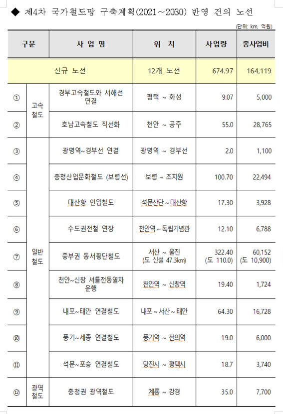 ¡®Á¦4Â÷ ±¹°¡Ã¶µµ¸Á ±¸Ãà °èȹ¡¯ ¹Ý¿µ ¿äû¡¦675§°¡¤16Á¶ 4119¾ï ±Ô¸ð