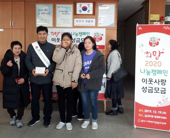 ÇÑÆí ¡®Èñ¸Á2020 ³ª´®Ä·ÆäÀΡ¯Àº ³»³â 1¿ù 31ÀϱîÁö ¸ð±ÝÀ» ½Ç½ÃÇϸç. ¸ð±ÝµÈ ¼º±ÝÀº Ãæ³²°øµ¿¸ð±Ýȸ¸¦ ÅëÇØ ¾Æ»ê½Ã¸¦ ºñ·ÔÇÑ ÃæÃ»³²µµ Áö¿ªÀÇ ¾î·Á¿î °¡Á¤À» À§ÇØ »ç¿ëµÉ ¿¹Á¤ÀÌ´Ù.