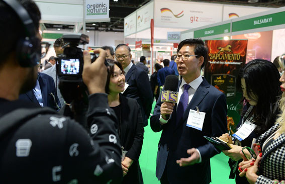 ¾ç Áö»ç´Â ¹Ú¶÷ȸ¿¡¼ ¼¼°è °¢±¹ÀÇ Á¦Ç°À» »ìÇÇ¸ç µµ³» ¾÷üµéÀÇ Áßµ¿ ½ÃÀå ÁøÃâ È®´ë ¹æ¾ÈÀ» ¸ð»öÇß´Ù.